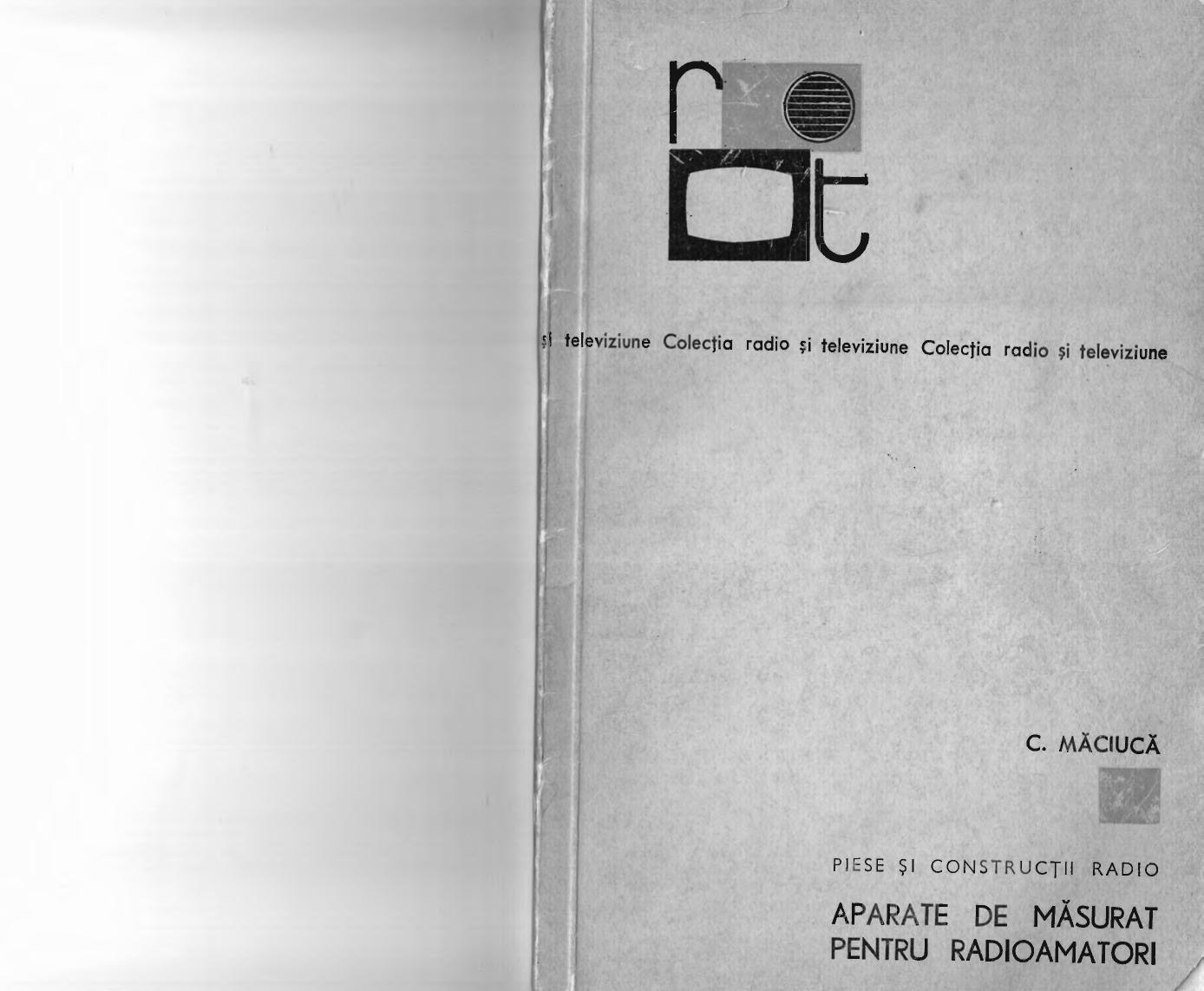 This Romanian-language technical manual serves as a practical guide for amateur radio enthusiasts, detailing various measurement instruments used in radio electronics. It explains the construction, calibration, and application of measurement devices such as voltmeters, ammeters, and frequency meters tailored for amateur use. The book belongs to the "Radio și Televiziune" collection and provides fundamental theoretical knowledge alongside hands-on experimental methods for building and using measuring equipment in hobbyist radio setups.