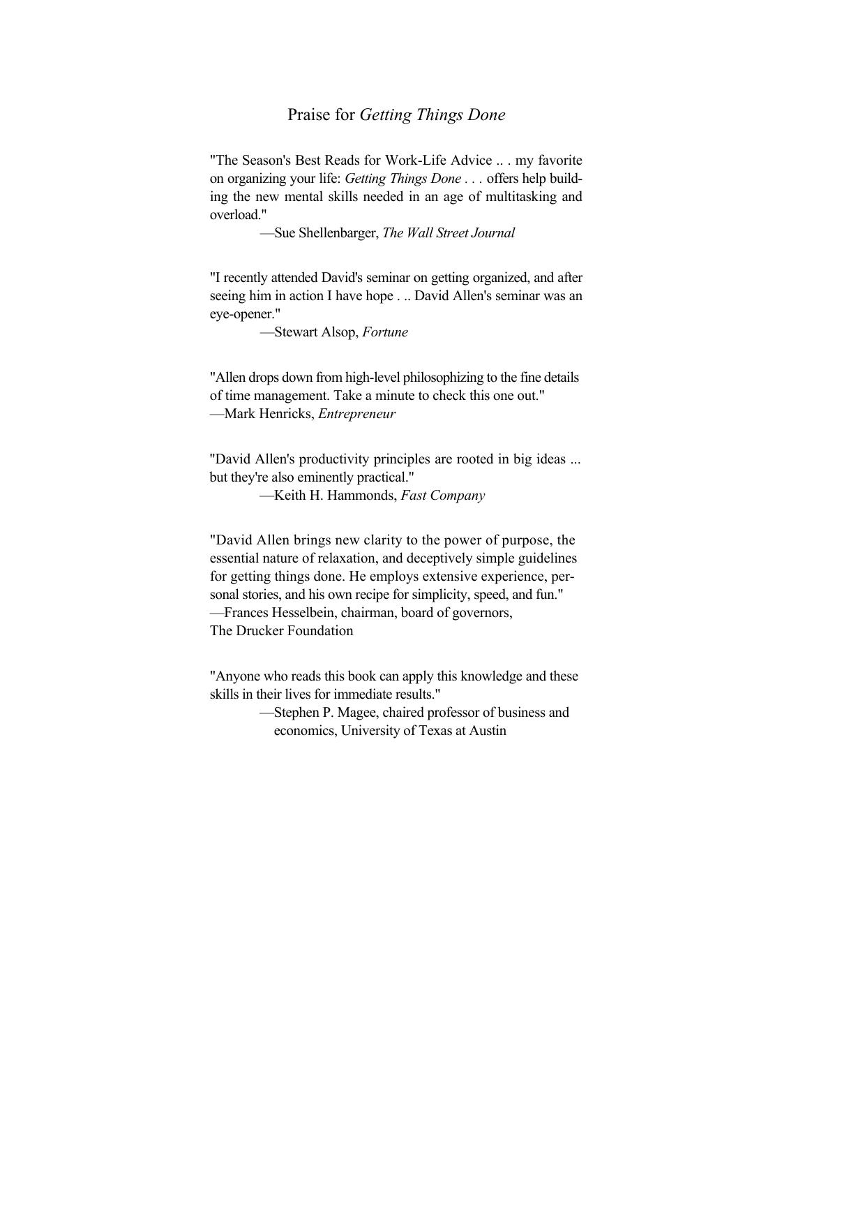 A groundbreaking guide to personal and professional productivity, this book introduces the Getting Things Done (GTD) system — a practical framework to capture tasks and commitments outside the mind, clarify next actions, organize workflow, reflect regularly, and engage effectively. The book aims to help readers reduce mental clutter, minimize stress, and increase focus and efficiency in their work and life.