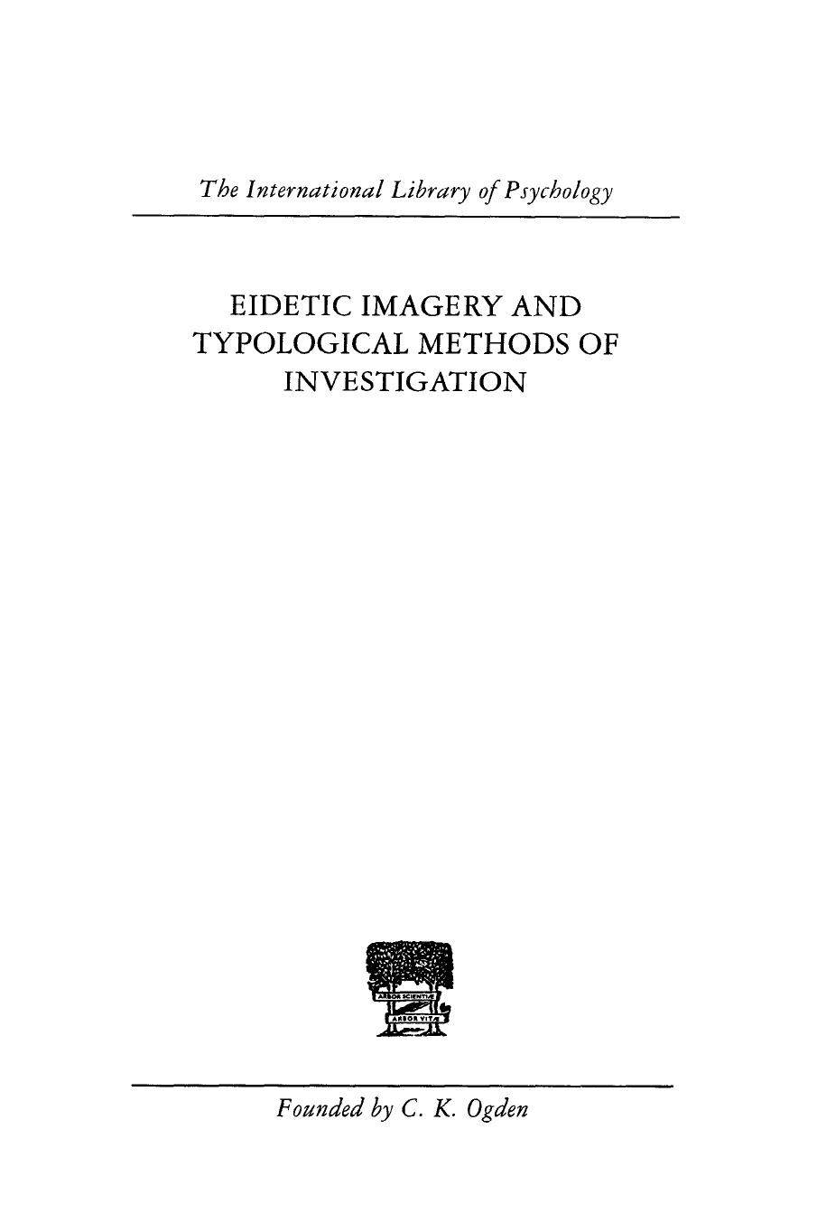 Title Eidetic Imagery and Typological Methods of Investigation : Their Importance for the Psychology of Childhood, the Theory of Education and General Psychology