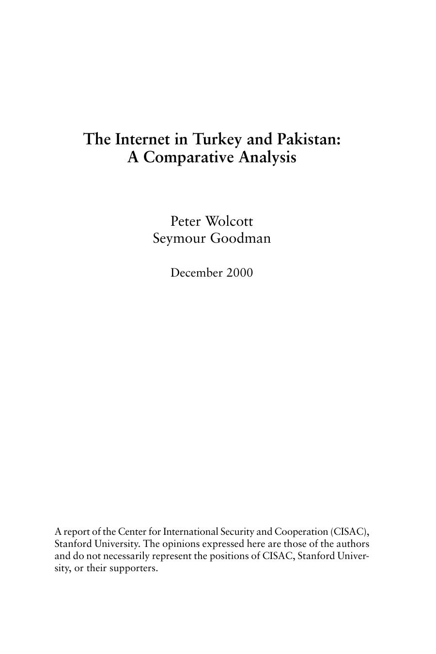 Title Internet in Turkey and Pakistan: A Comparative Analysis