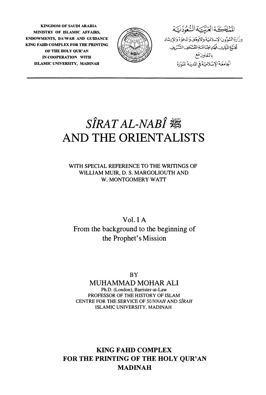 Title Sirat Al Nabi and the Orientalists