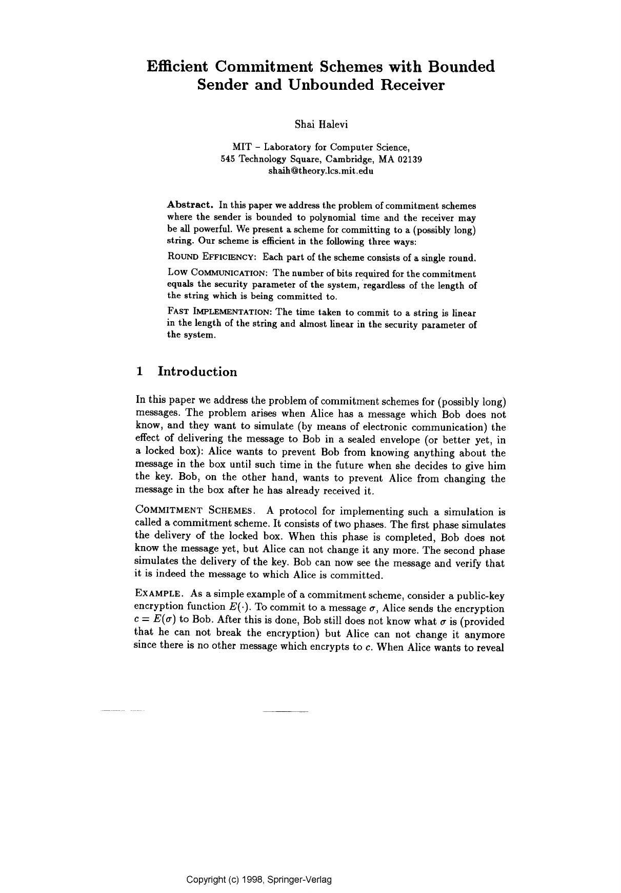 Subjects: Advances in Cryptology - Crypto '95, Lecture Notes in Computer Science Volume 963, bit commitment
